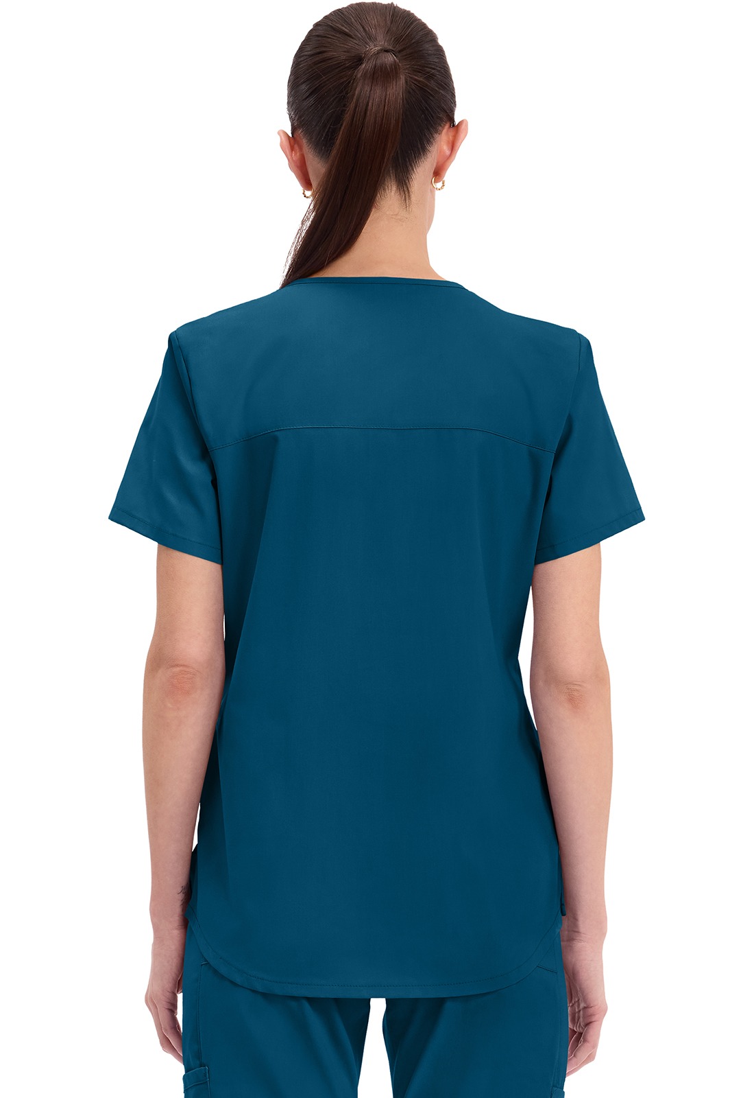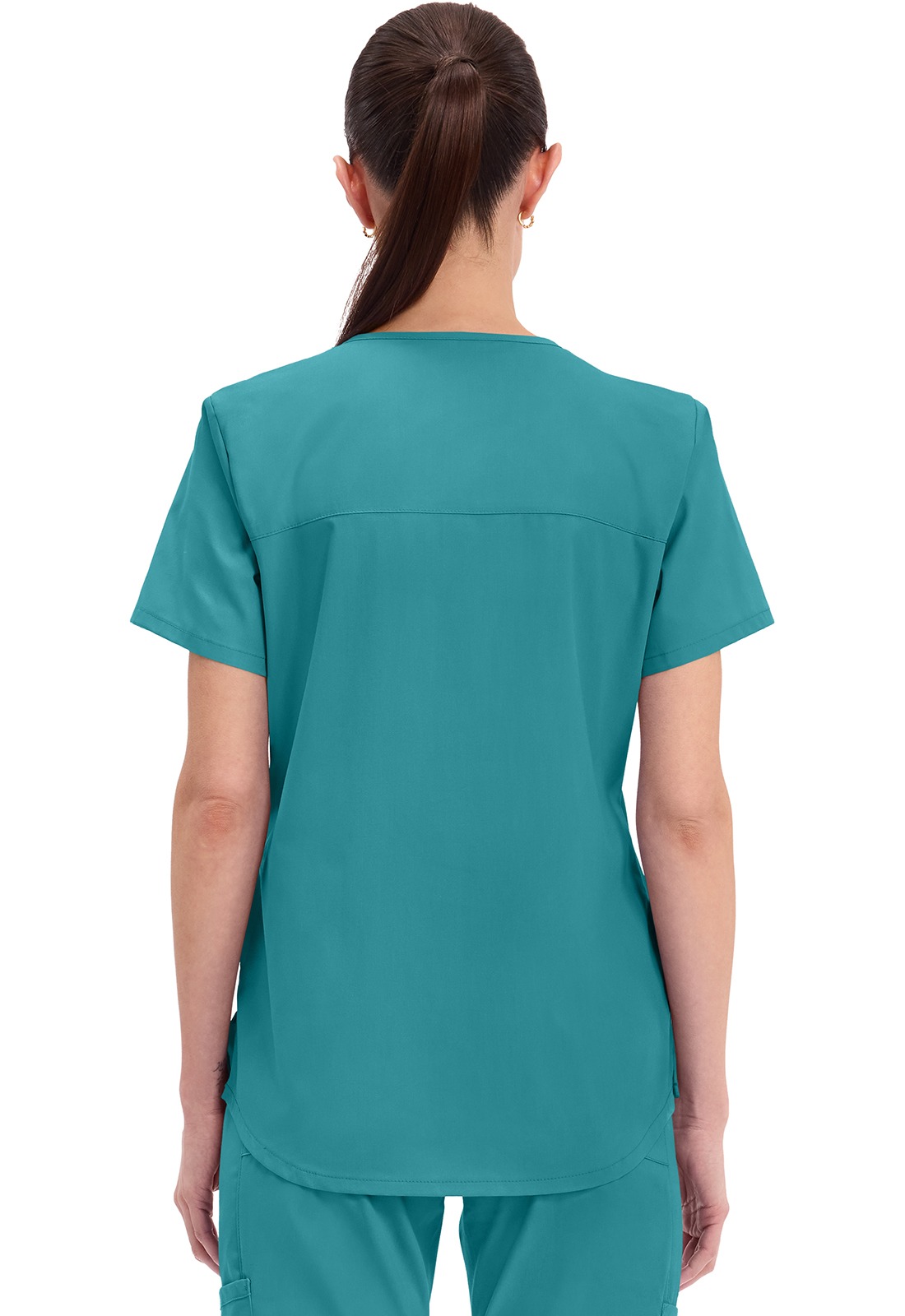 Cherokee WW665 Modern Classic Fit V-Neck Top with 3 pockets, ultra-soft 2-way stretch poplin, and easy care.