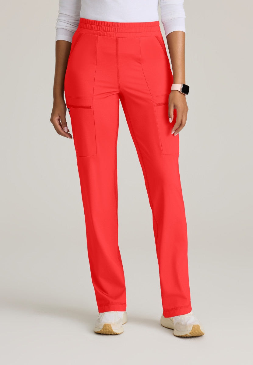 Experience the perfect combination of form and function with our Momentum Knit Pant! Crafted with you in mind, these high-rise scrubs feature a flat front waistband with a convenient drawcord for the perfect fit. With a straight leg design and six pockets in total including two slanted front pockets and two cargo pockets with hidden zippers these pants blend style with practicality. Plus, their antimicrobial properties keep you fresh and confident throughout your shift.