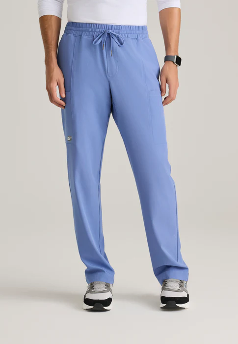 Mükemmel uyum için elastik beli ve ayarlanabilir kordonu bulunan bu dar düz pantolon, toplam beş cebe sahiptir: dikişli ön cepler, üstten girişli kargo cepler, kullanışlı kalem yuvası ve cırt cırtlı arka yama cep. Nemi uzaklaştıran çevre dostu 4 yönlü esnek kumaştan üretilen bu pantolonlar, gün boyu kullanım için idealdir.